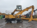 Very good condition scrap handler with magnet gear, solid tyres, hydraulic high rise cab and long reach rehandling arm