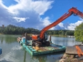Really strong work barge. Designed for max 23t machine. 12m long, 6.8m wide, 1.2m high. Two 12m x 3.4m sections. Easy to transport by road.