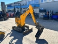 mit 3 Zylinder Perkins Dieselmotor 0,954 Liter Hubraum 13,6 kW (18,2 PS) max. Motorleistung, Akustische Warneinrichtungen, Schwenksperre, ISO-Bedienschema, Planierschild, Konstantpumpenhydraulik mit zwei Zahnradpumpen, Hammerhydraulik, Schwenkausleger, von 700 mm auf 1.000 mm hydraulisch verstellbarer Unterwagen und Hammerhydraulik