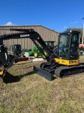 John Deere 50P excavator with ac cab, fixed blade, and long arm. Includes bucket and hydraulic thumb. Nationwide shipping available. Ask me about 0% interest financing. Contact Stephen at Ag-Pro Middleburg 352*824*3401