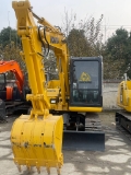 The Komatsu PC60-8 is a reliable 6-ton class hydraulic excavator ideal for urban construction, landscaping, small earthmoving, and utility projects. Powered by a Komatsu 4D102E engine with a rated power of 40.7kW (55PS), it delivers stable performance and fuel efficiency, paired with a high-response hydraulic system (max main pump flow 172L/min, working pressure 24.5MPa) for smooth and precise operation. With an operating weight of 6180kg, a bucket capacity ranging from 0.25 to 0.37m³, and a maximum arm digging force of 4060kgf, it balances compactness and strong digging capability. The machine features a reinforced undercarriage for durability, a ROPS/FOPS-certified ergonomic cab for operator comfort and safety, and a user-friendly layout for easy daily maintenance, making it a cost-effective and versatile choice for small to medium-scale construction tasks.
