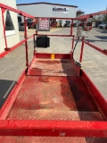 Hersteller: SkyJack Modell: SJ4620 Baujahr: 2011 Betriebsstunden abgelesen: 436 Stunden Batterien von 2021 Nettogewicht: ca. 1922 kg Arbeitshöhe: ca. 8,10m Plattformhöhe: 6,10m Tragfähigkeit: 590 kg Ladegerät ist eingebaut Nicht markierende Reifen