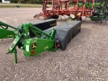 The John Deere R310 is a 3-point hitch, 8-disc mower featuring a 10.17 ft (3.11 m) cutting width, 2,986 rpm disc speed, and requires roughly 55+ PTO HP