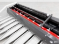- The adjustable guide plate, compared to the simpler tubular solution, prevents leaves from entering the machine and reduces grain loss. Reel height can be adjusted easily and comfortably from the cab. Thanks to the stalk puller, only the heads enter the combine’s threshing system, which reduces wear and fuel consumption and allows the use of a lower‑powered combine for harvesting.