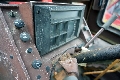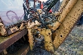 Hydraulpumpen är demonterad, axeln är skadad.