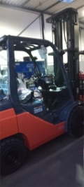 Mechanische Hebel mit Fahrtrichtungsumschalter an der Lenksäule, Halbkabine ohne Türen, Grammer MSG 65 inkl. Sicherheitsgurt orange und Gurtschloss-Überwachung, Treibgasanschluß, , SpecialEquipment: 3. Ventil, 4. Ventil, Arbeitsscheinwerfer vorn, Dachabdeckung, Frontscheibe, Halbkabine, CE Zertifikat, Innenspiegel, LED, OtherAttachments: Lastschutzgitter, Seitenschieber