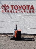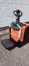 Schutzbügel, Plattform manuell hochklappbar, Servolenkung, Batterie Schnellverriegelung, seitlicher Batteriewechsel, Geschwindigkeit max. 10km/h, Gabelrollen Tandem Vulkollan,