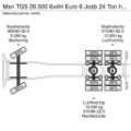 Front axle: Tyre size: 385/65-22.5; Max. axle load: 9000 kg; Steering; Tyre profile left: 50%; Tyre profile right: 50%; Reduction: hub reduction; Suspension: leaf suspension