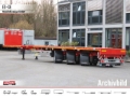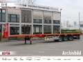 alle anderen Verzurrringe (LC 5.000 daN), 8 Paar Rungentaschen im Außenrahmen der Ladefläche eingelassen, für Steckrungen ca. 100 x 50 mm, 1 abschließbarer INOX-Werkzeugkasten, ca. 1.250 x 500 x 550 mm (L x B x H), unter der Ladefläche in Fahrtrichtung links montiert, Nachlenkung von vorne und hinten mittels Kabel-Fernbedienung bedienbar, mit Einspurkontrolle der Achsen, ohne Installation in der SZM, Stirnwand aus Stahl, ca. 1.800 mm hoch, in zertifizierter Ausführung nach EN12642 : 2016 XL, Runde NATO Steckdose an der Anschlussleiste vorne (Maeler & Kaege VG 96 917), 1 LED Arbeitsscheinwerfer jeweils links und rechts bei den Sattelstützen angebracht, mit Verkabelung auf die Anschlussleiste zur SZM, 3 Rungentaschenleisten quer im Ladeboden der Ladefläche montiert, für Steckrungen ca. 100 x 50 mm, 1 zusätzlicher einhängbarer Zwischentisch, ca. 500 mm breit, für die Auszugsröhre mit großem Querschnitt, mit Hartholzbelag, 1 zusätzlicher abschließbarer INOX-Werkzeugkasten, ca. 1.250 x 500 x 550 mm (L x B x H), unter der Ladefläche in Fahrtrichtung rechts montiert, 1 zusätzlicher abschließbarer INOX-Werkzeugkasten, ca. 1.250 x 500 x 550 mm (L x B x H), unter der Ladefläche in Fahrtrichtung links montiert, Containertaschen WADER in der Ladefläche zum Transport von: 1x 20' Container im Lastschwerpunkt, 2x 20' Container, 1x 40' Container, 1 LED Arbeitsscheinwerfer jeweils links und rechts vor den Achsen angebracht mit Verkabelung auf die Anschlussleiste zur SZM, Zentralschmieranlage mit 2 Pumpen, Marke BEKAMAX, mit Normalfett laut NLGI-2, Funkfernbedienung zur Bedienung der Nachlenkung, zusätzlich zur Kabelfernbedienung, mit 2 LED Kontrollleuchten am Empfänger als Einspurkontrolle, 2 Achslastmanometer auf der linken Seite montiert inklusive Achslastdiagramm, 1. Achse mit Anfahrhilfe
