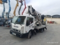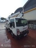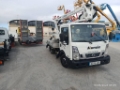 Camión cesta de doble articulación de 18m de altura de trabajo. Con mandos de estabilización hidráulicos y estabilizadores tipo A. Cesta con aperturas laterales.