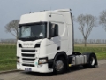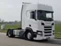 Number of axles: 2, Configuration: 4x2, Total fuel capacity: 1200 litre, 2nd fueltank, Fifth wheel height: 117 cm, fifth-wheel: Fixed, Diff. locks: 1, Aluminium rims, Suspension type: air suspension, Cabin type: Sleeping cabin, Cruise control, Tacho, Digital tachograph, Airconditioning, Parking Airco, Parking heater, Electric windows, Electric mirrors, Radio/cassette, Color: white, Heated mirrors, Lighting type: Halogen lamps, Laneassist, Climatecontrol, Seat heating, Bluetooth, Blind spot sensor, Fuel type: diesel, Euro: 6, Gearbox kind: Opti-cruise, Gearbox make: Scania, Number of Gears: 12, Add. break system, Retarder make: Scania, Power steering, ABS, ASR, Starter battery, Central locking, Seats configuration: 1+1, Seat cover: cloth, Chair adjustment: Manually